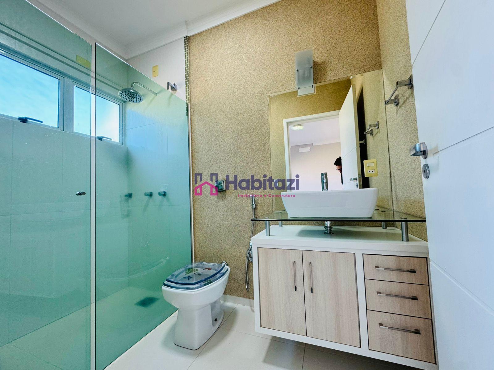 O acabamento combina piso porcelanato nas áreas sociais e laminado nas áreas íntimas, teto com rebaixo em gesso, esquadrias de qualidade, portão eletrônico, alarme e ar-condicionado instalado.